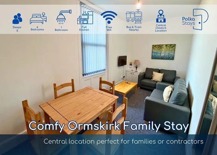 El apartamento Comfy Ormskirk Family Stay By Polkastays ofrece un buen acceso a varios lugares de interés de la ciudad, como el Emmanuel Methodist United Reformed Church, situado a unos 5 minutos a pie.